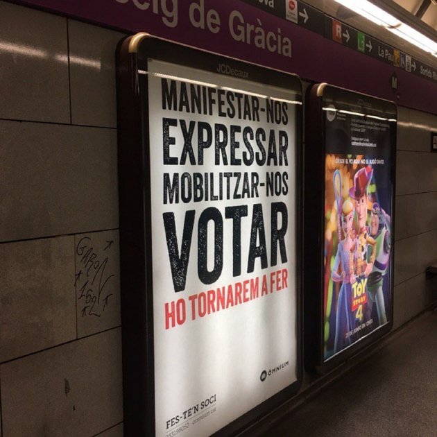 Òmnium Cultural ha denunciado este martes a través de un comunicado una "operación mediática promovida por PP y Cs para desacreditar la campaña 'Ho tornarem a fer'", la cual está presente en el transporte público del área metropolitana y también en los accesos de las grandes ciudades.