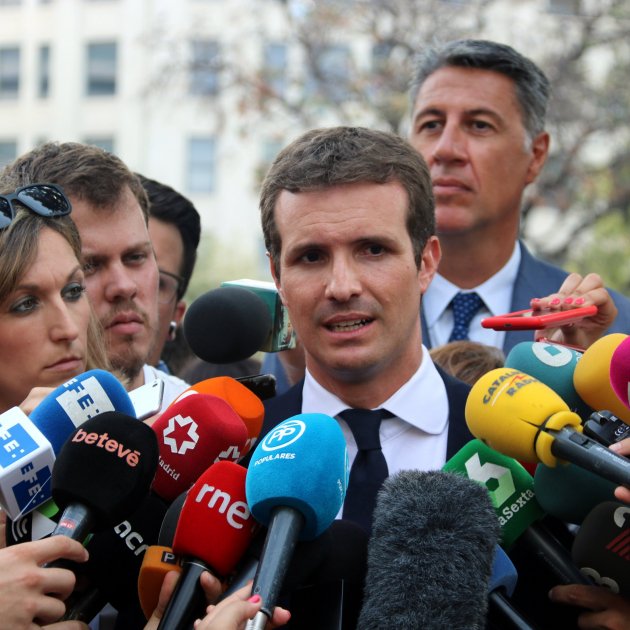 Los hechos se han producido mientras Casado hacía declaraciones a la prensa, donde ha afirmado que la jornada de hoy "no puede ser un día de reivindicación del independentismo". Entre gritos de parte del público, Casado ha rechazado las declaraciones de ayer del president Torra sobre la necesidad de atacar al Estado, asegurando que "el ataque ya ha empezado contra el rey de España".