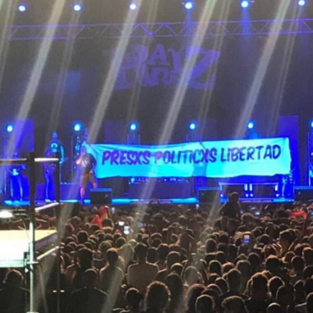 Una pancarta a favor de los presos políticos ha aparecido en un concierto de las fiestas de San Sebastián de los Reyes (Madrid), durante una actuación del grupo de rock y ska La Raíz, y ello ha provocado la indignación del españolismo.