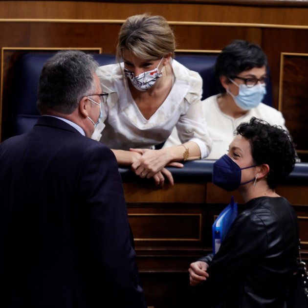 Un micro abierto ha pillado a las nuevas dirigentes de Podemos, la vicepresidenta Yolanda Díaz, y la futura líder del partido, la ministra Ione Belarra, diciendo ascos de las mascarillas. "Son un coñazo", han indicado cuándo presidían la reunión del grupo parlamentario de Unidas Podemos, ya sin Pablo Iglesias.