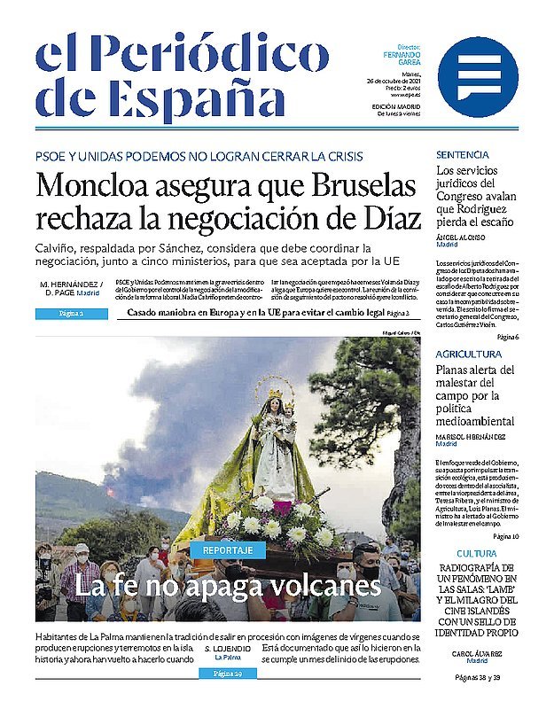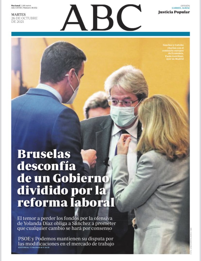 Finalmente, como ya se había pronosticado aquí —no era difícil— tienen razón las portadas que anunciaban, día sí día también, el apocalipsis del Gobierno a causa de la disensión infinita entre los dos socios. Ningún diario explica las razones del desacuerdo entre el PSOE y Unidas Podemos, salvo que el presidente del gobierno quiere que la vicepresidenta Nadia Calviño encabece la negociación de la nueva regulación laboral, mientras que la vicepresidenta de Trabajo, la ministra comunista Yolanda Díaz, quiere hacerlo ella. A ver, tiene un punto. En dos años, Díaz ha conseguido 12 acuerdos entre sindicatos, patronal y gobierno central en la mesa de diálogo social, entre otros tres aumentos del salario mínimo. ¿Por qué le arrebatan el mando ahora que llega el filet mignon de la negociación laboral, que es de su cartera? Calviño, como antigua eurócrata sénior (fue directora general de Presupuestos de la Comisión Europea de 2014 a 2018), es vista por Bruselas como garantía de que no se tocará mucho la regulación laboral vigente, la del 2012, que les gusta tanto. La UE ya ha dejado entender que no está para cuentos y que están en juego los fondos postpandemia, de los que dependen los presupuestos generales del Estado. Es un juego un poco mafioso en el tablero del poder, donde La Vanguardia, El Periódico de España, El Mundo, ABC y La Razón juegan hoy de peones contra Unidas Podemos.