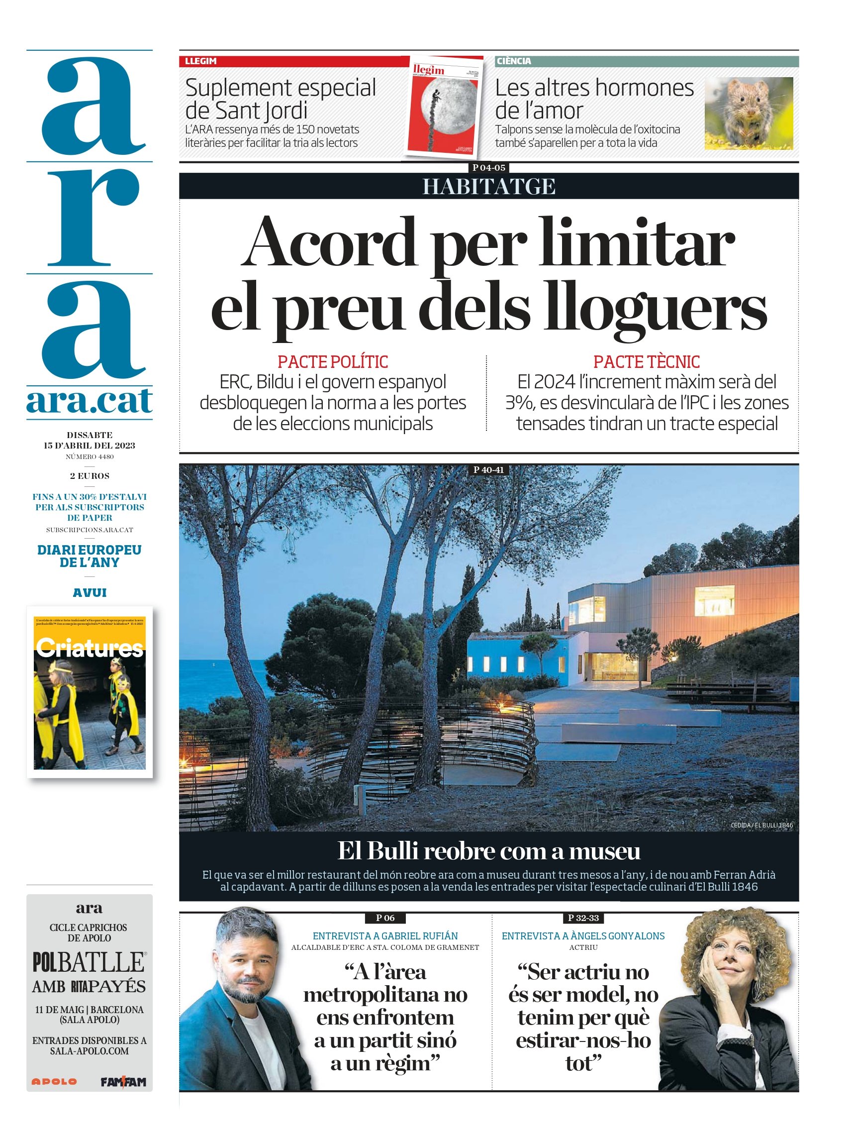 Las portadas de los diarios impresos de Madrid aúllan o se quejan del tope del 3% impuesto al alquiler de viviendas para 2024, la principal medida de la futura ley de la vivienda pactada entre el gobierno español, ERC y Bildu. El Trío de la Bencina ve la ley motivada por una perfidia soviética. El Mundo dice que "acorrala a los propietarios". Pobres propietarios. Encima de los trabajos a que los someten el Estado y, a menudo, los inquilinos, tienen que soportar la histeria y la adivinación de intenciones que practica el tabloide ultra. ABC alerta de que "altera el mercado inmobiliario". Vaya. ¿Qué tendría que alterar, el mercado de diamantes de Amberes? "Ampara la okupación", añade. Claro que sí. La Razón, como suele, pasa de explicar el contenido de la norma en los títulos de portada y dice que es la puesta de largo de "la entente" de Pedro Sánchez con los "filoetarras e independentistas" para las elecciones municipales del 28-M. Filoetarras. Realmente... Incluso a El País parece que se le escapa media queja en su titular: dice que el pacto "impone más límites al alquiler". Impone. Más límites. Como queriendo decir que encaja nuevas restricciones a martillazos. Quizás puede leerse lo contrario y resulta que tiene un deje celebratorio. No parece.