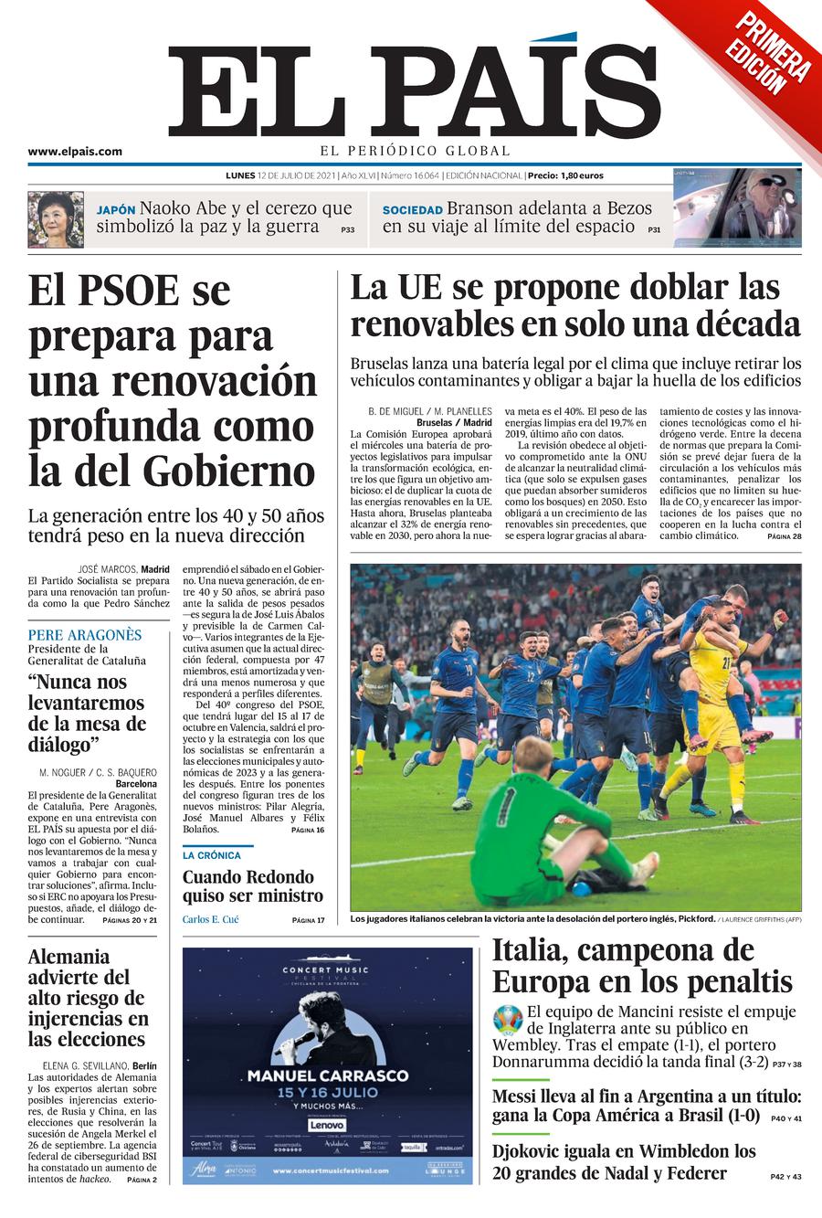 La mayoría de los diarios abre hoy con todo tipo de declaraciones y comentarios anónimos, atribuidos a misteriosos exministros y cargos socialistas, que avanzan la inminente renovación del PSOE (o purga, o tsunami, o... depende del diario) una vez hecha la crisis de gobierno, que se ha llevado río abajo a pesos pesados socialistas y algunos peces pequeños. Pedro Sánchez se presentado como el Leviatán que comanda esta transfiguración del aparato socialista español. Ciertamente, los diarios del Trío de la Bencina querrían presentarle como un hombre sin escrúpulos, implacable y despiadado, para hacerte ver que es un político defectuoso y tirano que merece risa, befa y menosprecio. Da la impresión contraria: parece todo un estadista con un proyecto, decidido a hacer valer sus propósitos arrollando, si es preciso, a apparatxiks y comisarios del partido, incluso a su mismo gurú Iván Redondo, de quien era adicto —siempre según esos diarios— y estaba a dos o tres portadas de convertir-se una leyenda tipo Saruman, Rasputin o Freddy Krueger.