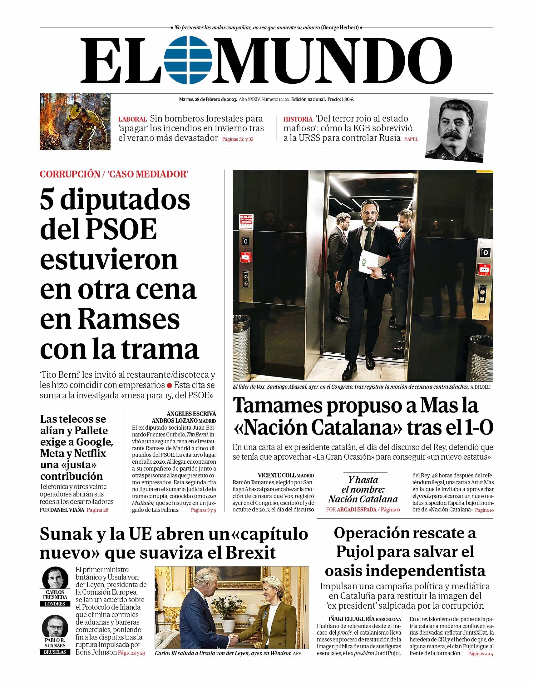 El gordo informativo de este martes se lo lleva La Vanguardia. El País, el segundo premio. Son dos primicias que confirman lo que los medios sabían y no decían: el gobierno del Partido Popular inicia en 2012, y hasta 2019, una operación contra el movimiento independentista catalán en el que utiliza a la policía española y otros aparatos del Estado para orquestar una campaña de descrédito de sus líderes y personalidades. Es la llamada "operación Catalunya", en la que colaboraron de buenas o malas tantos medios, incluidos los que estos días se escandalizarán mucho. Ambos diarios se han guardado la exclusiva para el diario impreso hasta la mañana de este martes —quizás por cosas así son los que venden más ejemplares de papel.