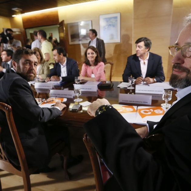 ¿C's? "No es lo mismo meter la mano que la pata". Esta frase es la que han repetido todos los políticos de C's que, como ya es habitual, no se salen ni un milímetro del argumentario de turno. El vicepresidente del partido naranja, José Manuel Villegas, es el encargado de comunicar a la prensa los avances en las negociaciones y, probablemente, la persona que ha repetido esta frase más veces.