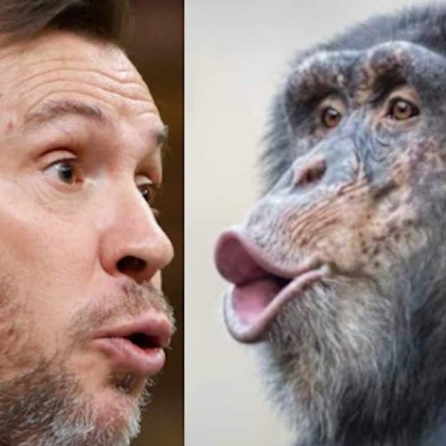 En la foto, un ser poco evolucionado y carente de educación y cortesía. Molesto y con tendencia a hacer ruidos grotescos. Junto a él, un primate.