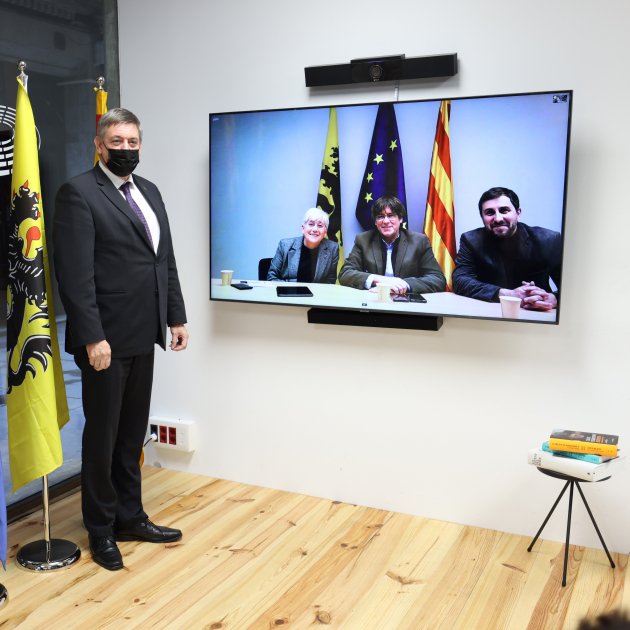 El presidente de Flandes conversa telemáticamente con el president Puigdemont / Foto: Sergi Alcàzar