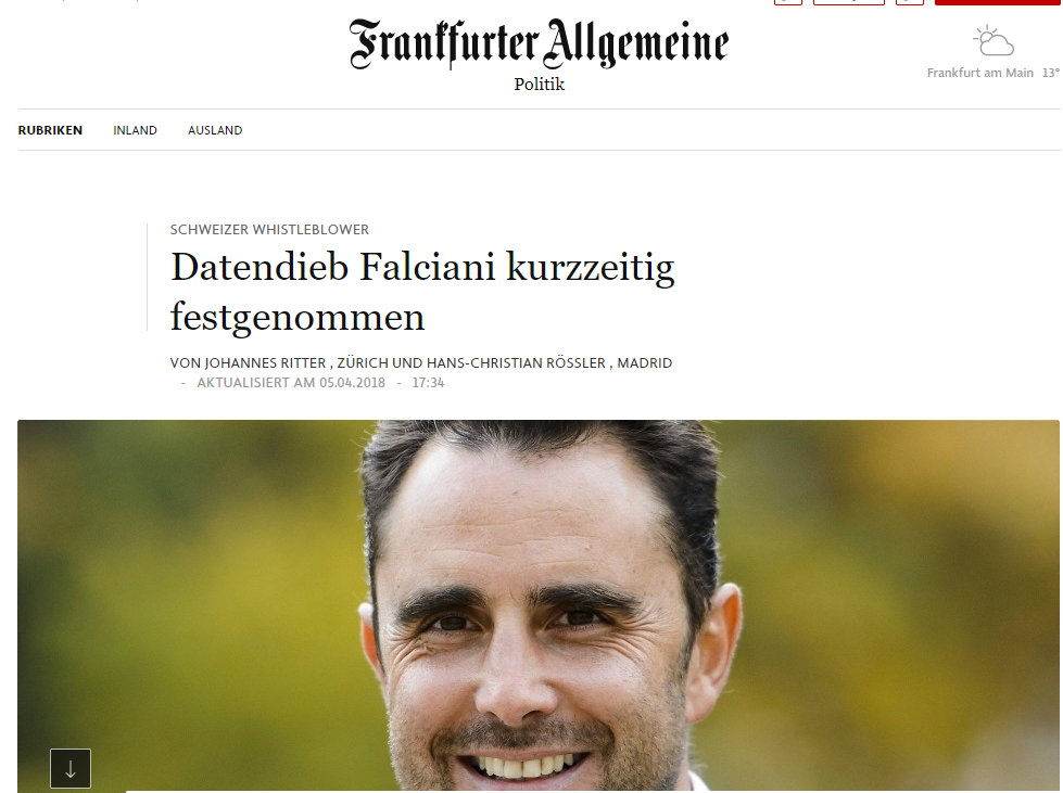 "El caso de la detención de Falciani tiene que ver con el conflicto de Catalunya", indica el Frankfurter. El diario recuerda que España está interesada en buscar un elemento de reciprocidad con Suiza.