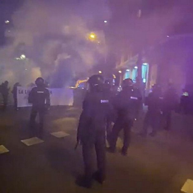 Efectivos de los Mossos d'Esquadra han impedido que los manifestantes llegaran al lugar del establecimiento comercial en desuso que habían ocupado, pero no se han producido incidentes. Los jóvenes han prendido potes de humo.