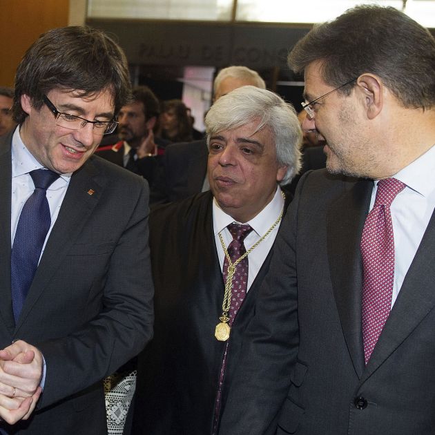 El presidente de la Generalitat, Carles Puigdemont, y el ministro de Justicia, Rafael Catalá, "hablaron a solas" este viernes en un acto en el que coincidieron en el Colegio de Abogados de Barcelona, en la celebración de su patrón, aunque se desconoce el contenido de esta conversación.