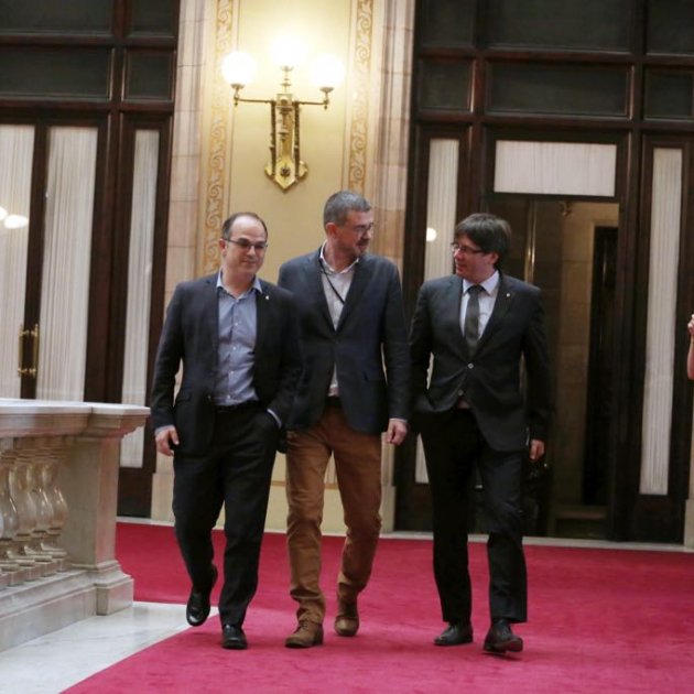 A la reunión de Puigdemont y Clotet se ha añadido el conseller de Presidència, Jordi Turull, y los tres han salido juntos del despacho a la hora de la votación al pleno.