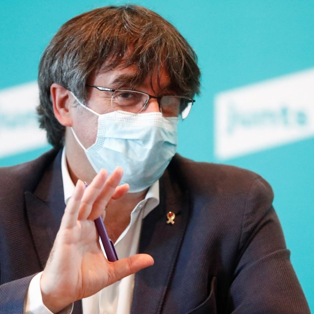 Imagen principal: El presidente en el exilio, Carles Puigdemont, durante una rueda de prensa / Efe