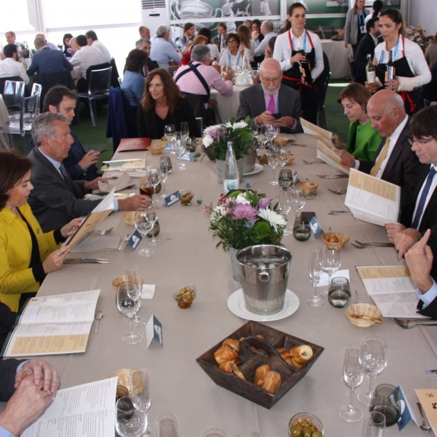 En la misma mesa también está el presidente del Real Club de Tenis Barcelona, Beto Agustí; el exdirectivo del Barça Javier Faus; el secretario general de Esport, Gerard Martí; la jefa de gabinete de Sáenz de Santamaría, María Pico; Jaume Llena y el director de La Vanguardia, Màrius Carol.