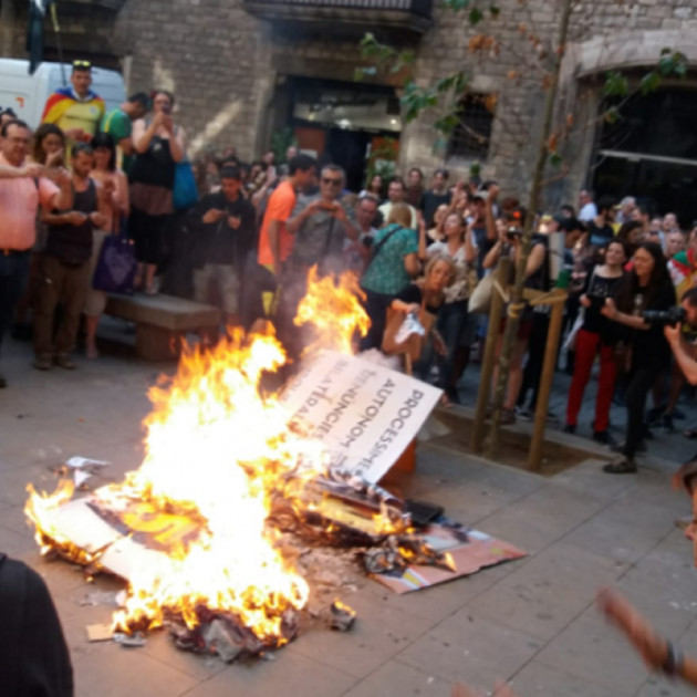 Durante la manifestación se ha quemado la Constitución Española e imágenes del rey Felipe VI y de los dirigentes de los partidos que impulsaron la aplicación del 155, como los socialistas Pedro Sánchez y Miquel Iceta, los populares Mariano Rajoy, Xavier Garcia Albiol o los líderes de Ciudadanos Albert Rivera y Inés Arrimadas.