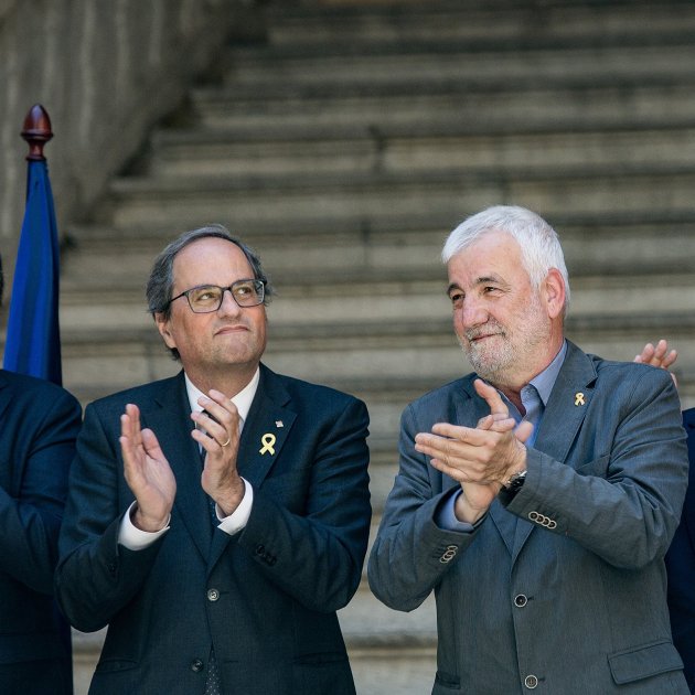 Al pie de la misma escalera desde donde al día siguiente de la declaración de independencia y la vigilia de emprender su camino hacia la capital de Europa, el president Carles Puigdemont hizo su última comparecencia pública antes de marcharse al exilio, en el Patio de las Magnolias de la Delegación del Gobierno en Girona, su sucesor, Quim Torra, ha recibido al senador Jami Matamala, acabado de llegar de Waterloo.
