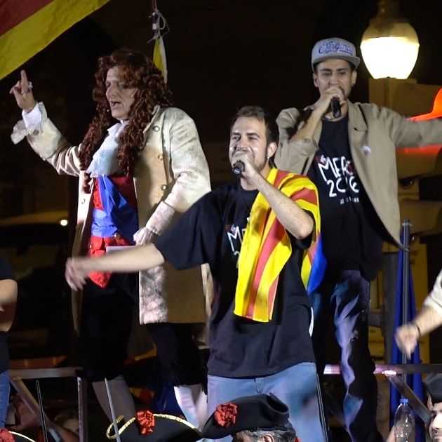 Este jueves, tras el pregón de Toni Albà vestido de Felipe V, el grupo Darma Rap estrenó el Rap per la Independència. Darma Rap es una formación de Terrassa integrada por Mohi Lee, Aleixsandrus y Sandro el Critiko.