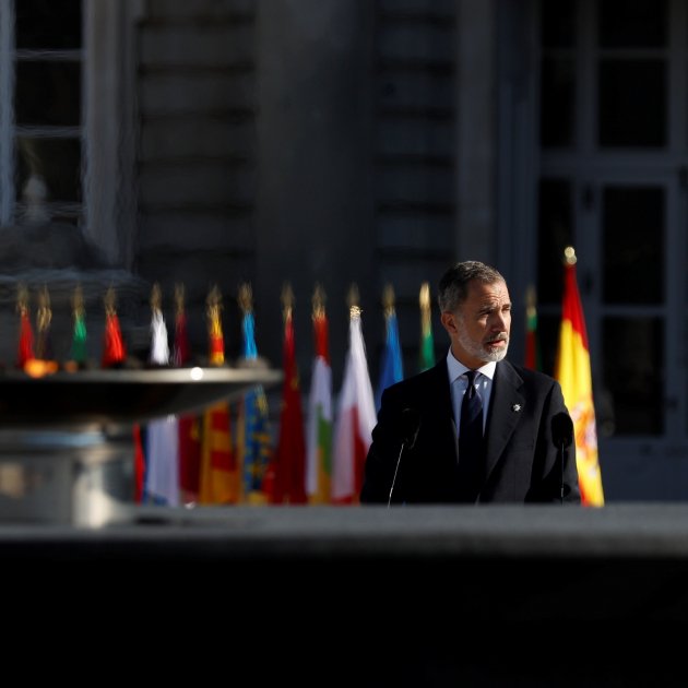 Se ha hecho en el Palacio Real y, una vez más, el protagonismo ha sido para el Rey, que ha concluido el acto con un discurso. En el parlamento, Felipe VI ha instado a las autoridades a "no permitir el olvido" de los ciudadanos que han tenido que "enfrentar esta enfermedad, los que murieron en soledad, la generación que nos ha dejado un vacío y que nos ha hecho ser lo que somos y los profesionales que entregaron su vida para salvar muchas otras". Como ya hizo hace un año, el monarca ha defendido que "en desafíos como este la unidad es fundamental".