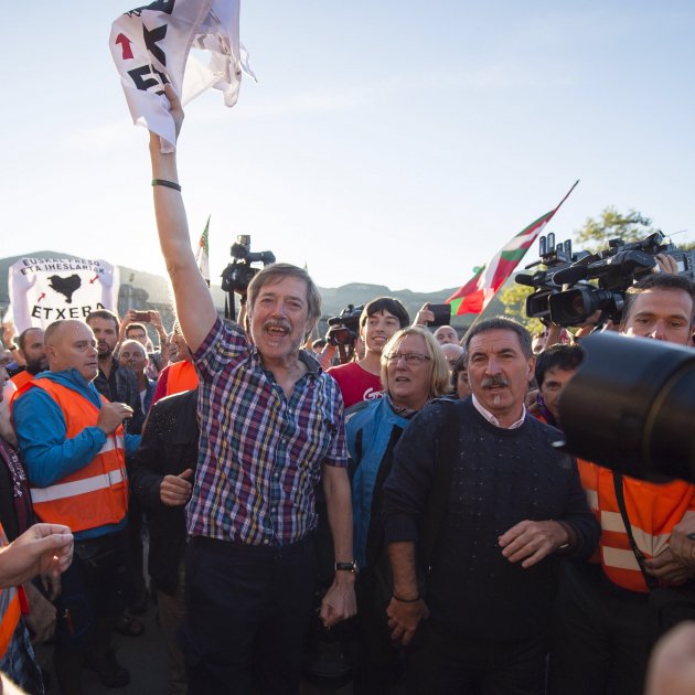El primer abrazo que ha dado Diez Usabiaga al acercarse a sus amigos y compañeros ha sido a su abogado, Íñigo Iruin, y Arnaldo Otegi ha sido también de los primeros que ha saludado. Entre gritos de ánimo de la multitud, el ex secretario general de LAB se ha subido a un coche con su familia y su abogado y ha abandonado el lugar.