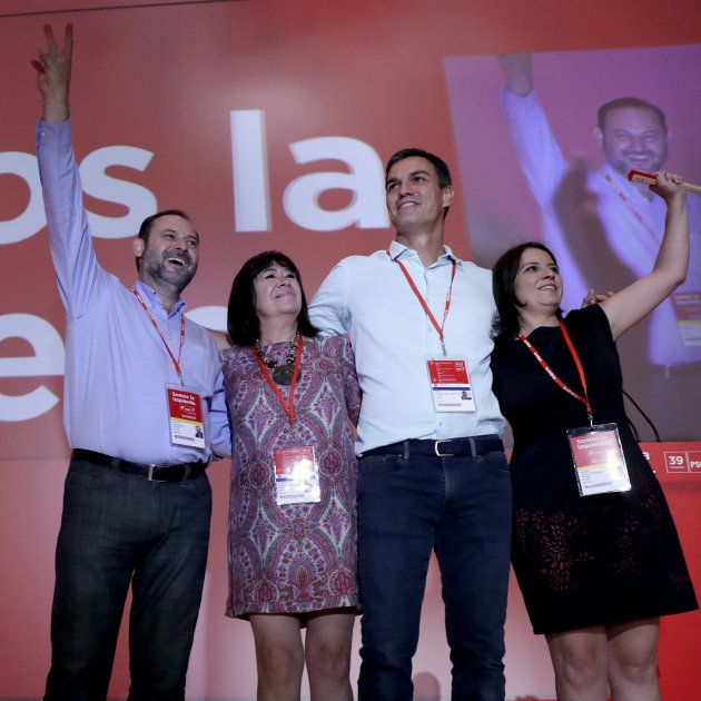"Presidente, presidente", con estos gritos era recibido el secretario general del PSOE, Pedro Sánchez, bajo la mirada de la vieja guardia. Aplausos, baño de masas, a medida que Sánchez y los suyos subían al escenario. La gloria del líder contrastaba con el desprecio de los exdirigentes Alfredo Pérez Rubalcaba, Joaquín Almunia y José Luis Rodríguez Zapatero, los días posteriores a la victoria de primarias. El 39º congreso federal obligaba su presencia, y hoy se sentaban a su lado, flanqueándole, porque "el PSOE es el PSOE" y José Luis Rodríguez Zapatero dice que, nuevo o viejo, siempre le gusta.
