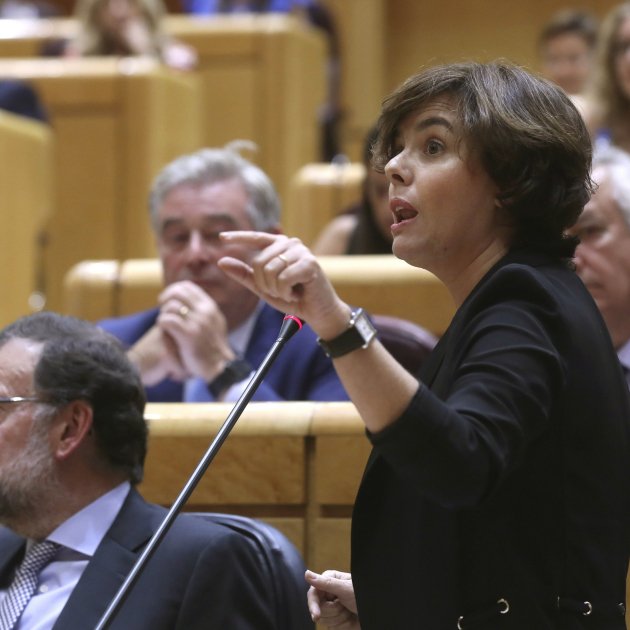 "No se pueden ignorar los informes de los letrados del Consell de Garanties", le ha increpado Santamaría, recordando que el grupo independentista omitió el trámite preceptivo de este órgano –que es meramente consultivo– antes de aprobar las dos leyes de desconexión. La vicepresidenta se ha deshecho entonces en adjetivos para cargar contra la organización del referéndum y ha denunciado que los independentistas se "parapetasen" detrás del Parlament para no hacer cumplir la ley. "Quieren imponer la independencia a pesar de la legalidad, en contra de la democracia, a costa de los derechos y libertades", ha lamentado.