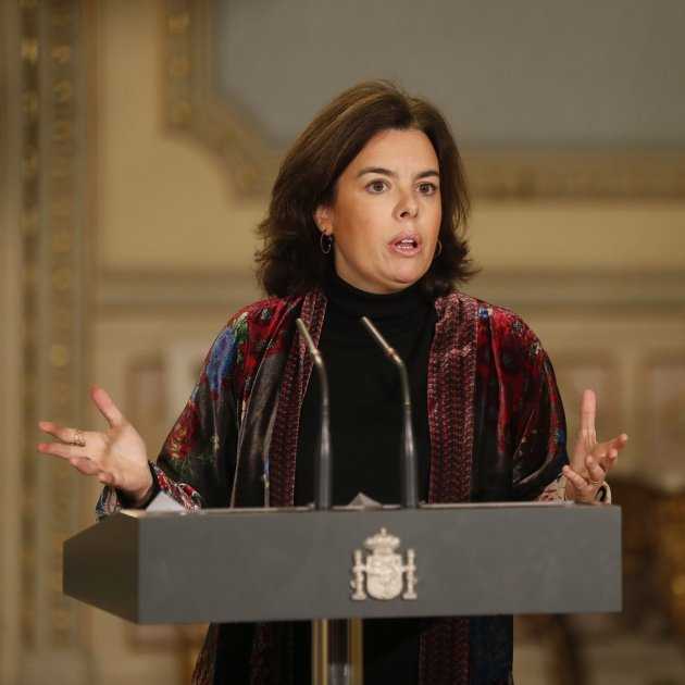 La única opinión que la número dos de Mariano Rajoy ha lanzado sobre el 6-F es sobre las supuestas incongruencias del soberanismo. "Si algunos creen que amparándose en la ley pueden asistir a las manifestaciones, también tienen que respetar la ley cuando pide responsabilidades", ha respondido sobre la manifestación de al menos 40.000 inscritos que ha tenido lugar en Barcelona para acompañar a Mas, Ortega y Rigau. En una línea similar se había justificado el portavoz del Partido Popular, Pablo Casado, en Génova, denotando que esta respuesta venía a ser parte del argumentario.