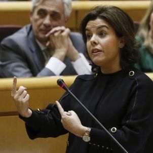 La vicepresidenta del gobierno español, Soraya Sáenz de Santamaría, ha criticado hoy al portavoz del PDECat en el Senado, Josep Lluis Clèries, y lo ha acusado de pensar en sólo un catalán, en referencia a Francesc Homs, a quien hoy el Congreso permitirá que el Supremo lo pueda juzgar. Santamaría lo ha dicho durante la sesión de control del Senado al poder ejecutivo.