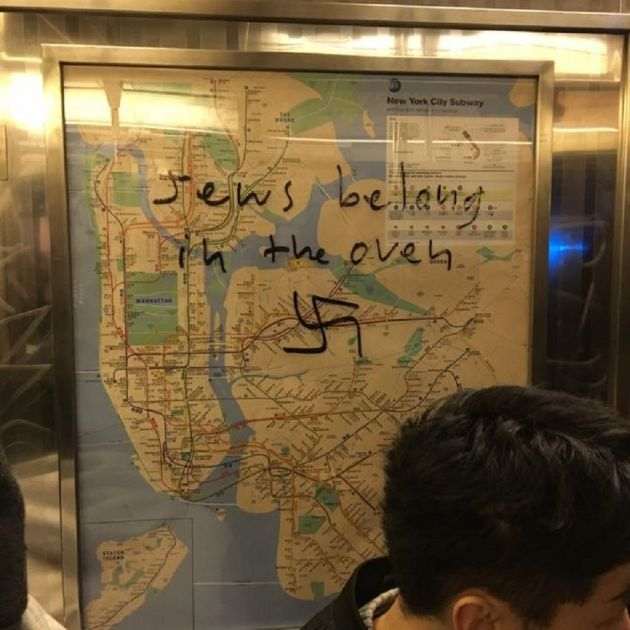 Según han explicado usuarios del medio de transporte, "en cada anuncio y en cada ventana" del metro había esvásticas, además de escritos beligerantes con los judíos. En la siguiente fotografía, por ejemplo, se puede leer el texto "los judíos pertenecen al horno", en clara referencia a las cámaras de gas de los nazis durante la Segunda Guerra Mundial.