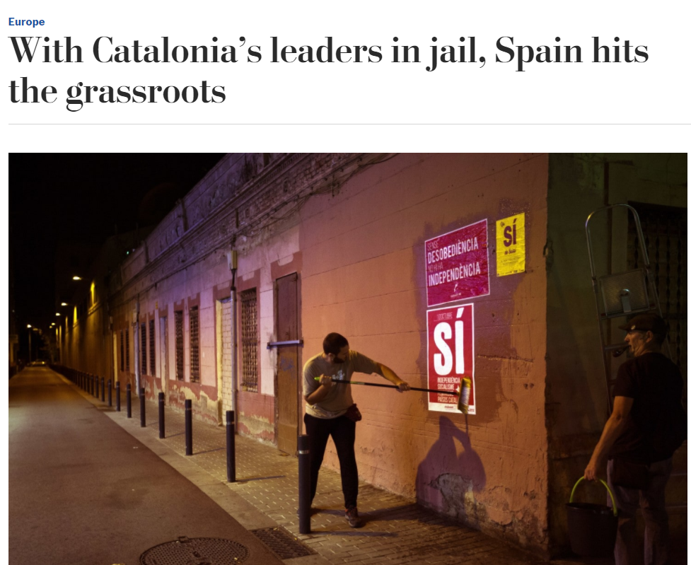 The Washington Post ha dedicado un artículo a describir qué son los CDR, y afirma que la persecución judicial que están sufriendo es un cambio de estrategia del poder español, que ahora se centraría en "atacar las bases independentistas". "Con los dirigentes de Catalunya en prisión, España golpea a las bases", titula el rotativo norteamericano.