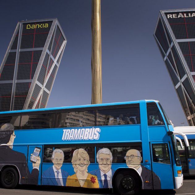 Podemos puso en marcha ayer un autobús, llamado Tramabús, con el cual quiere denunciar a aquellos que considera responsables de la corrupción en España. Ayer, varios dirigentes de la formación -entre ellos Pablo Iglesias e Irene Montero- circularon por las calles de Madrid a bordo del llamado Tramabús.