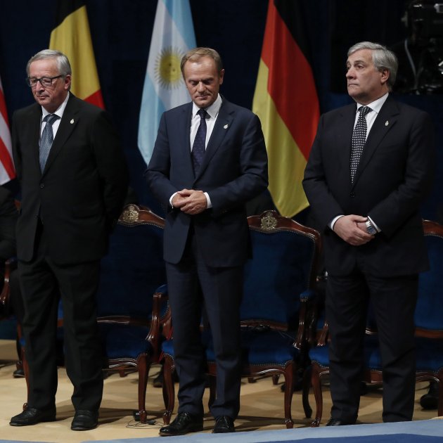 Los jefes de la Unión Europa han cerrado filas con Mariano Rajoy en su estrategia con Catalunya, justo el día antes de darse a conocer las medidas que se aplicarán a través del artículo 155 de la Constitución. El presidente de la Comisión Europea, Jean-Claude Juncker, el presidente del Parlamento Europeo, Antonio Tajani, y el presidente del Consejo Europeo, Donald Tusk, han asistido este viernes a la entrega del Premio Princesa de Asturias para recibir el galardón a la Concordia concedido a la Unión Europea. En su discurso, los tres han cerrado filas con el presidente español, Mariano Rajoy, y han pronunciado un duro mensaje contra los independentistas catalanes.