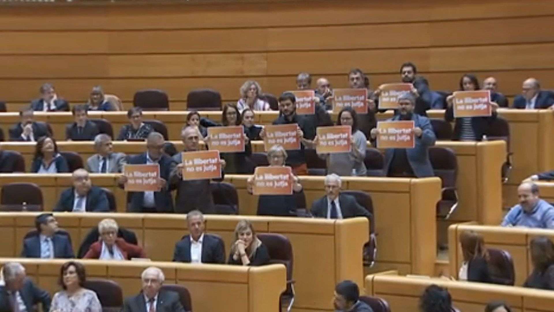 La preocupación principal de la intervención de Vidal es el hecho de que los tres poderes del Estado están "cada vez más separados de la democracia". En este sentido, ha dirigido una última advertencia a Rajoy: "No lo olvide: la libertad no se juzga". A continuación, los senadores del grupo de ERC se han puesto en pie y han mostrado carteles con esta última frase.
