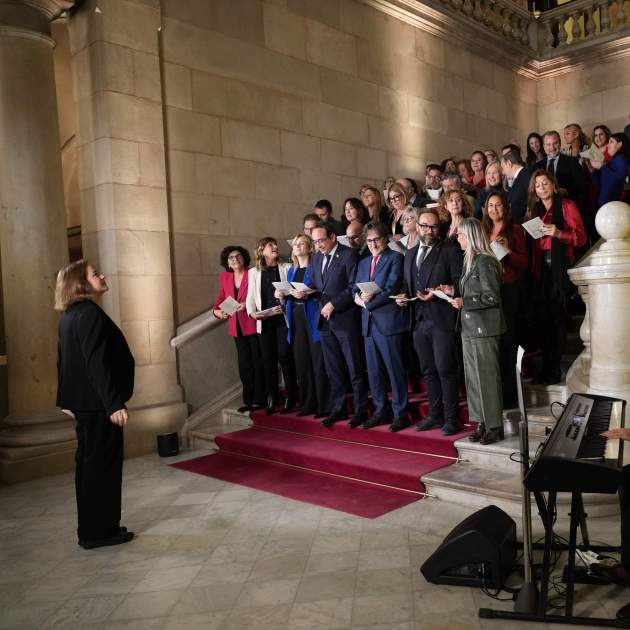 Con el árbol, el pesebre, el tió y el caganer, al Parlament solo le faltaba el canto de villancicos que el año pasado recuperó el presidente de la cámara, Josep Rull. Este jueves, al acabarse el último pleno del año y antes de que los diputados se vayan de vacaciones, los más cantores se reunieron, encabezados por los integrantes de la mesa, en la escalera del Parlament para entonar unas cuantas piezas, algunas de más "modernas", como Quan somrius, y otras más clásicas, como Les dotze van tocant Ahora bien, entre la sesentena de diputados (no llegaban a la mayoría absoluta) no había representantes de todos los partidos: Vox, la CUP y Aliança Catalana no enviaron ningún representante. También ha habido quien no se ha atrevido a unirse a los cantores, pero no se lo ha querido perder y ha seguido el recital desde unos metros de distancia. En nombre del Govern, cantó la consellera de Educació, Esther Niubó, poco después de que los sindicatos educativos convocaran una huelga para el próximo 11 de febrero después de que la reunión con el departamento fracasara. Dicen que quien canta sus males espanta. El president Salvador Illa, finalmente, no se ha sumado a la iniciativa.