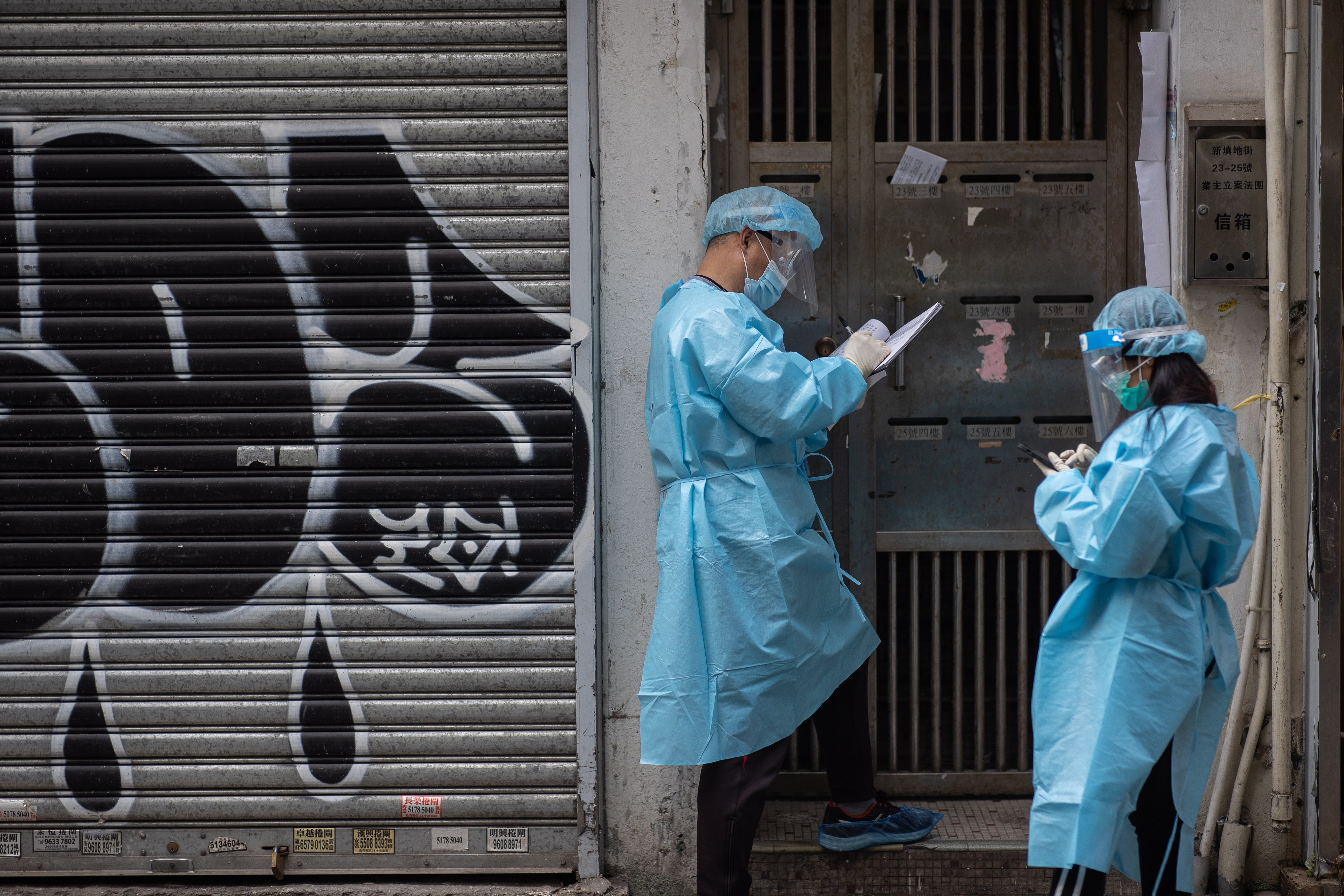 Imagen principal: trabajadores sanitarios realizan cribados para detectar casos de coronavirus en Hong Kong / Efe