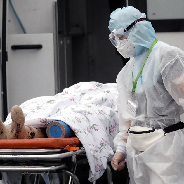 Imagen principal: un miembro del personal sanitario arrastra una camilla / Efe