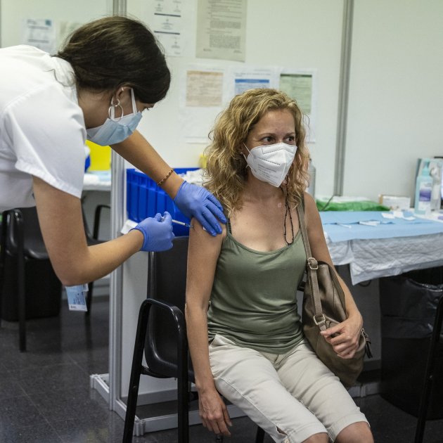 Imagen principal: Una mujer recibe la vacuna contra la covid-19. Sergi Alcàzar.