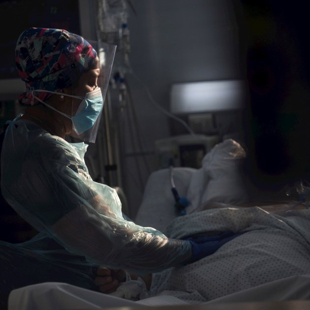 Imagen principal: Una sanitaria atiende a un paciente en la UCI. EFE.