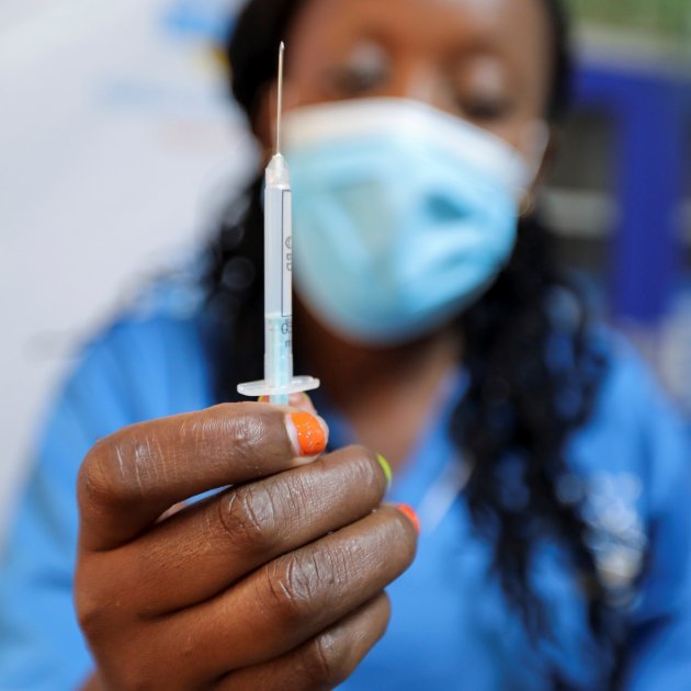Imagen principal: un miembro del personal sanitario de Kenia sostiene una vacuna contra la covid / Efe