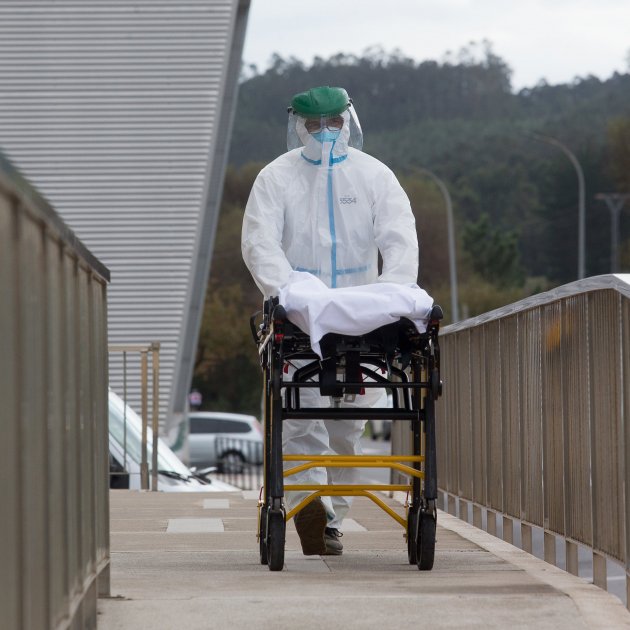 Imagen principal: Un sanitario lleva una litera en una residencia. / Europa Press