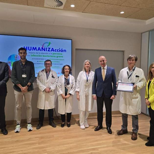 El Servicio de Medicina Interna del Hospital Universitario 12 de Octubre ha obtenido la certificación en humanización de la atención a pacientes con infección bacteriana grave. Este distintivo, otorgado por la Fundación Humans en el marco del proyecto HUMANIZAcción, con el apoyo de Angelini Pharma, reconoce el compromiso y la labor del hospital por implantar un modelo asistencial integral y centrado en las personas.