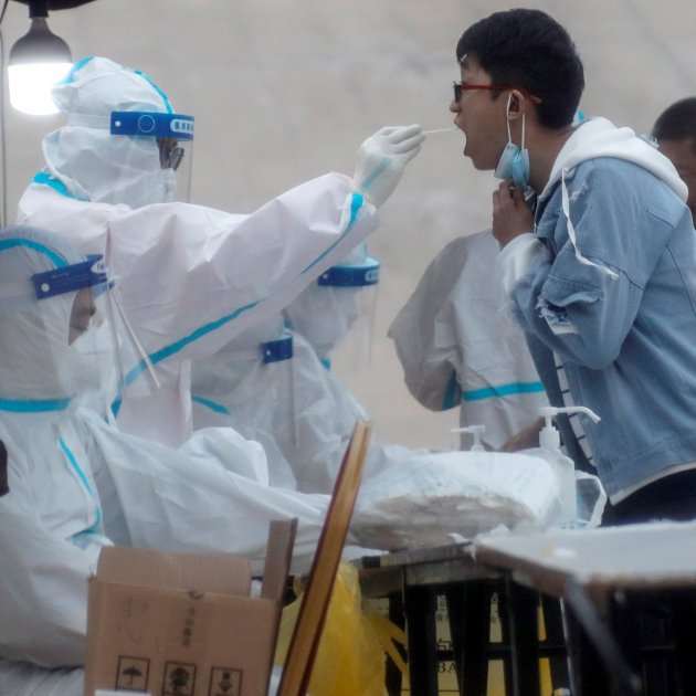 Imagen principal: un miembro del personal sanitario realiza un test de coronavirus en Beijing / Efe