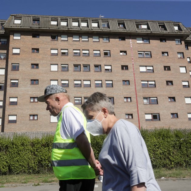 Imagen principal: Dos personas mayores pasean delante de una residencia. Europa Press.