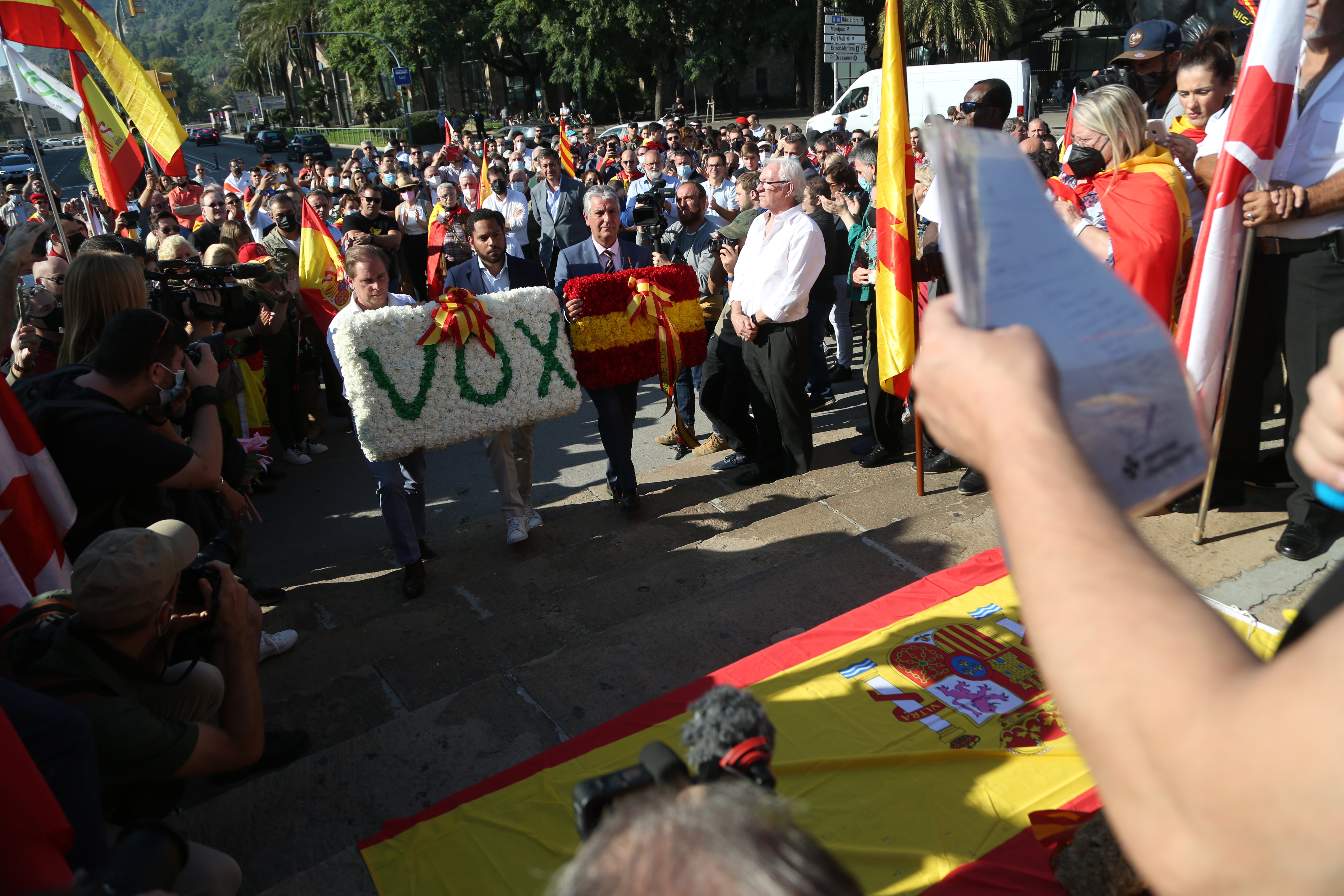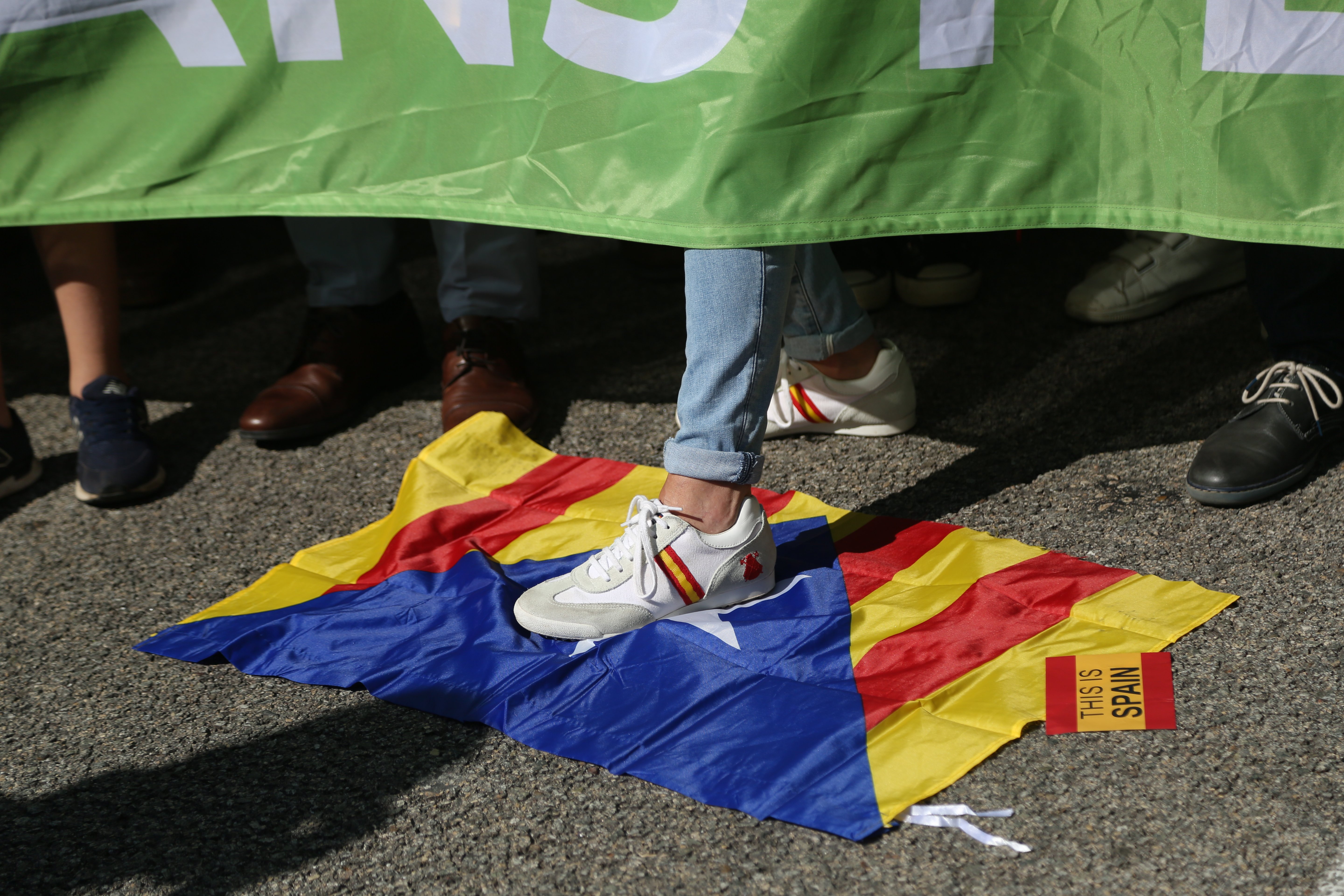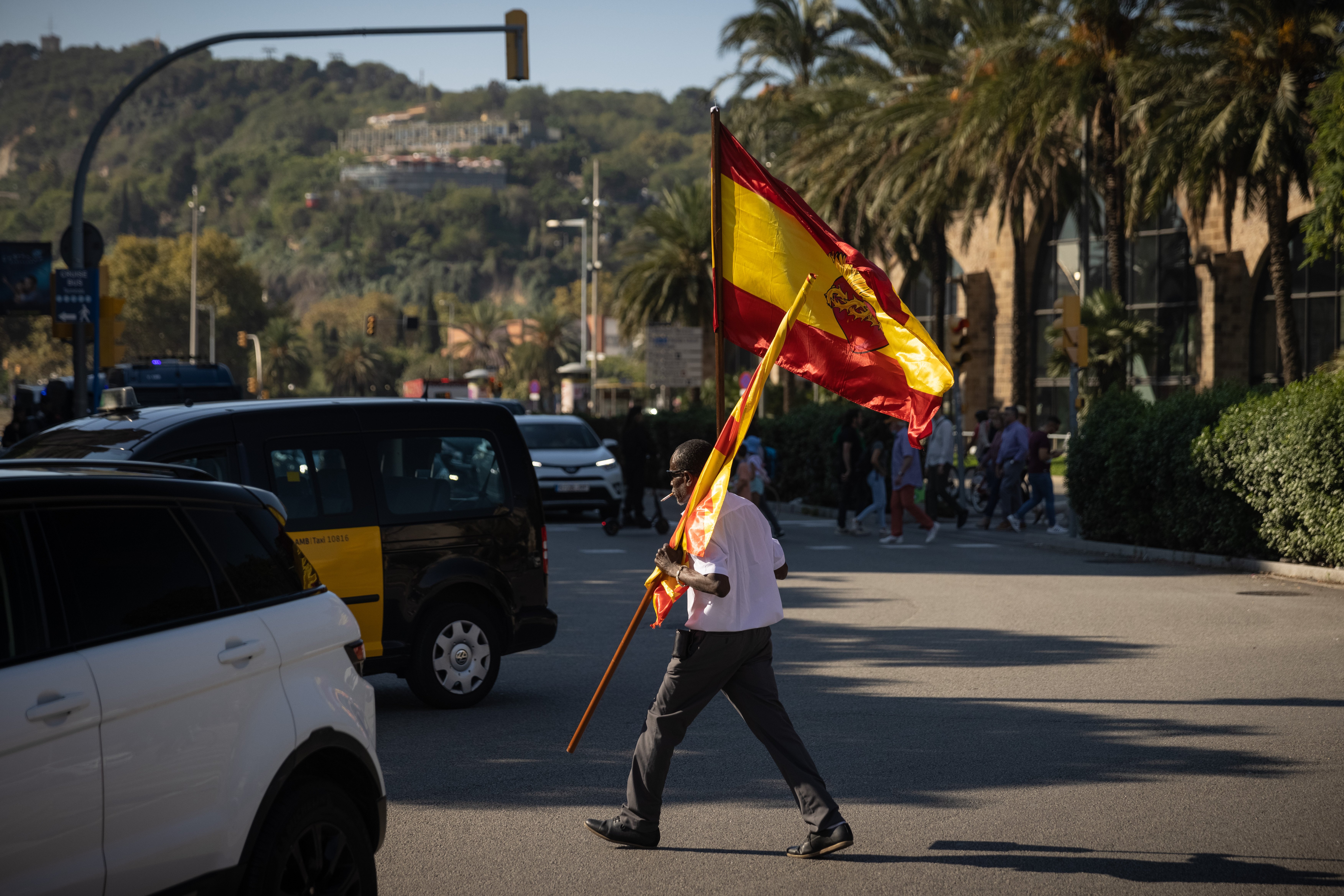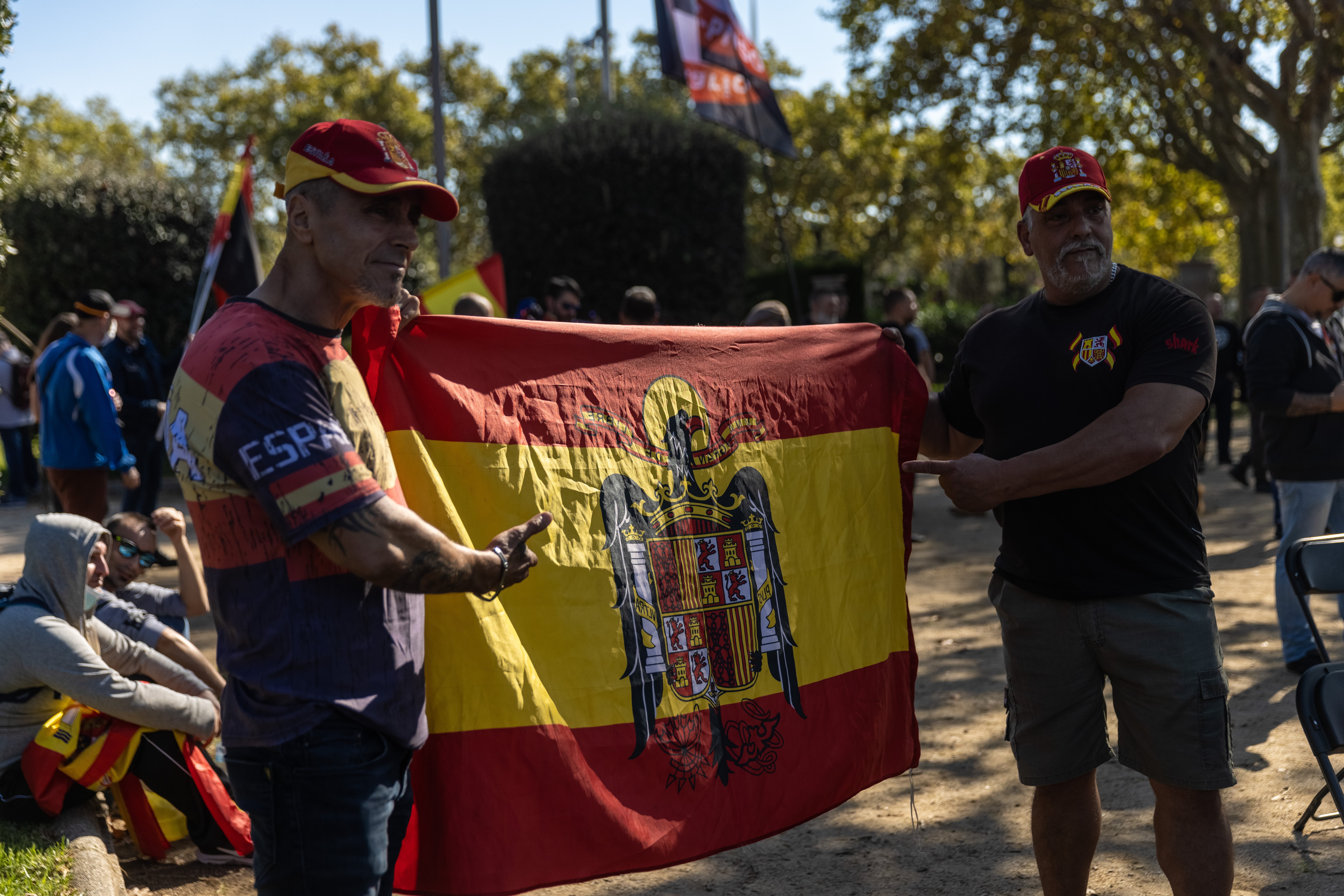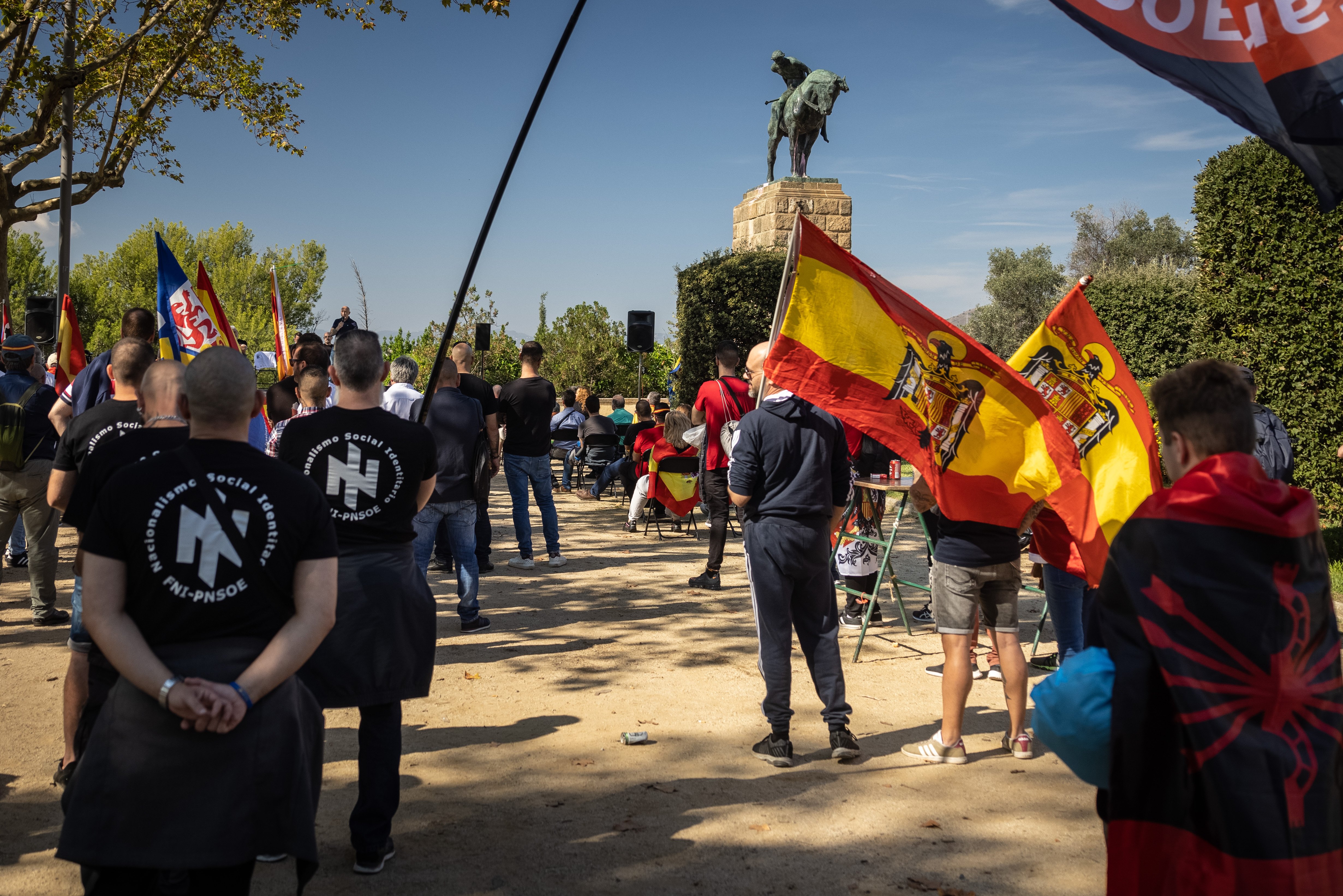 Equipados con banderas españolas y banderas fascistas han subido hasta Montjïc y han quemado esteladas al mismo tiempo que han hecho proclamas a favor de la violencia contra los independentistas. Una de estas proclamas se ha dirigido a los "comandos urbanos" a quienes se les ha pedido que luchen contra "los traidores de España".