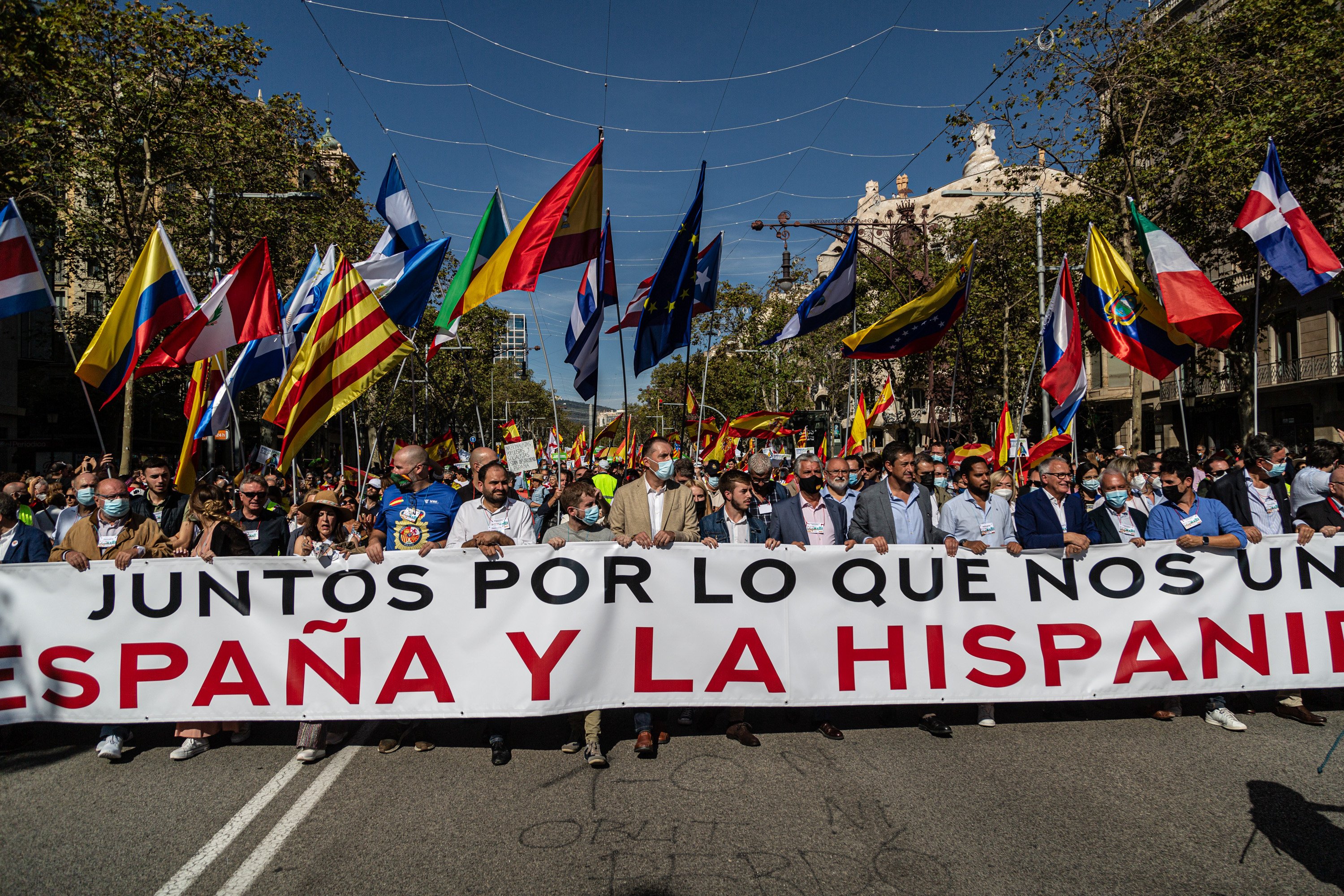 El unionismo ha vuelto a intentar hacer una demostración de fuerza en Barcelona el 12-O con varios actos. Ninguno, sin embargo, ha sido multitudinario.