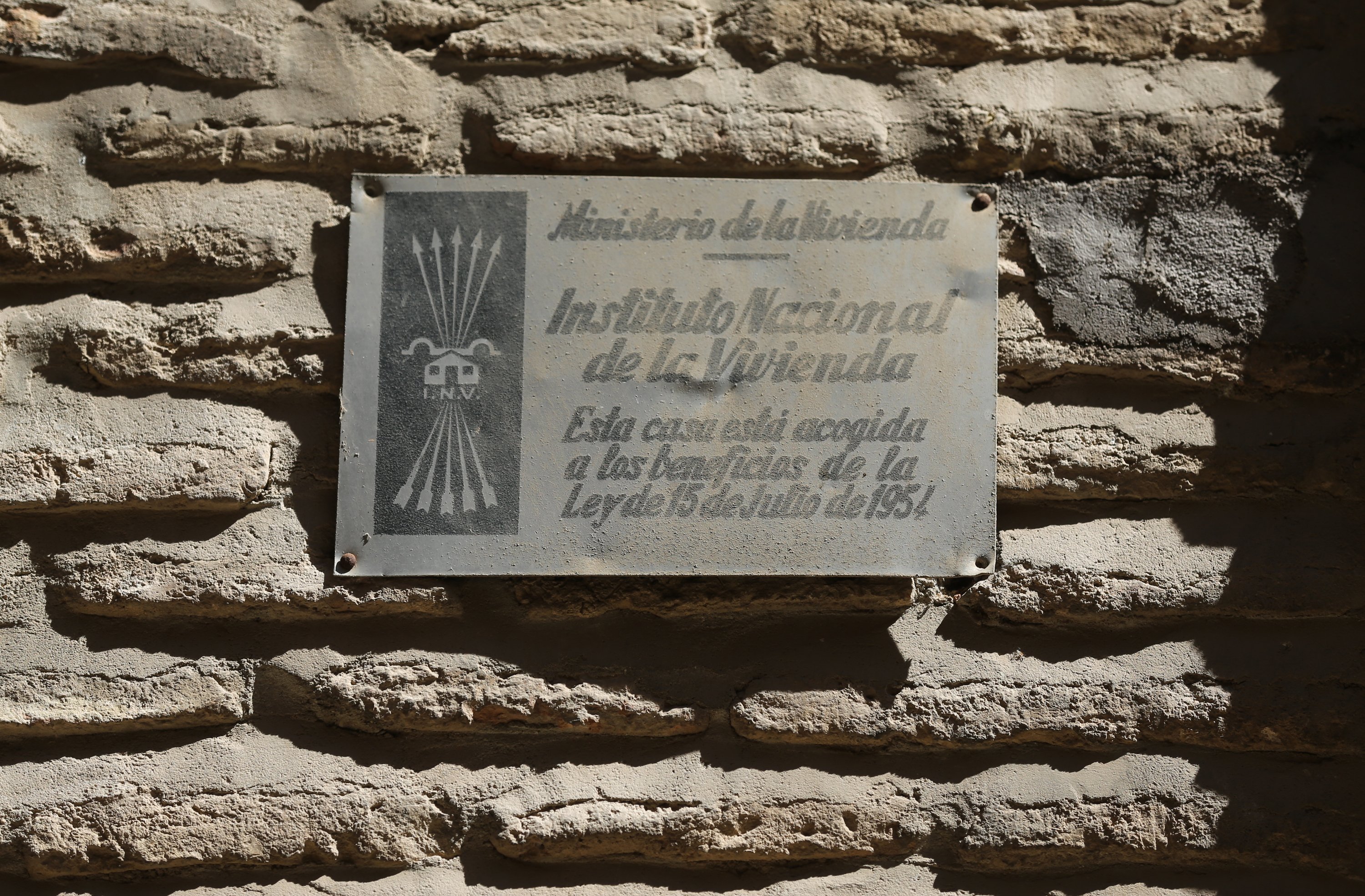 Imagen principal: Una placa franquista del Instituto Nacional de la Vivienda en Toledo. / Isabel Infantes / Europa Press