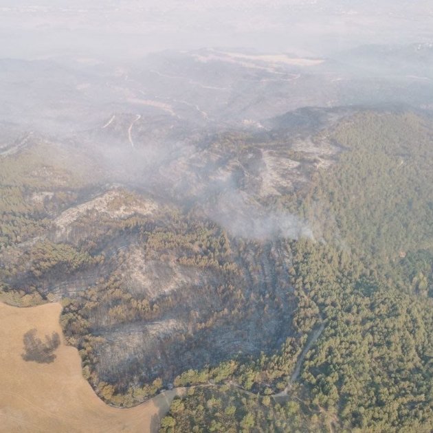 Durante la jornada de este lunes, por otra parte, los Bombers han puesto el foco en controlar el flanco derecho del incendio, después de que esta mañana el flanco izquierdo se haya contenido en una zona llena de pistas forestales y campos y del límite oeste por la carretera C-16. En este punto, a primera hora de este lunes, se ha informado de que no quedaban prácticamente llamas, aunque sí que había bastantes puntos calientes, rematados por los bomberos. Ha sido aquí donde las diversas propiedades de las tres urbanizaciones han quedado afectadas.