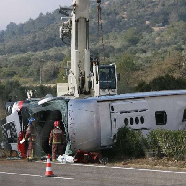 Unas 17 dotaciones de bomberos trabajan en la zona y una grúa está haciendo maniobras para retirar el autobús de la autopista. Eso sí, hasta que no llegue la segunda grúa, no se podrán conocer a ciencia cierta todos los detalles del siniestro.