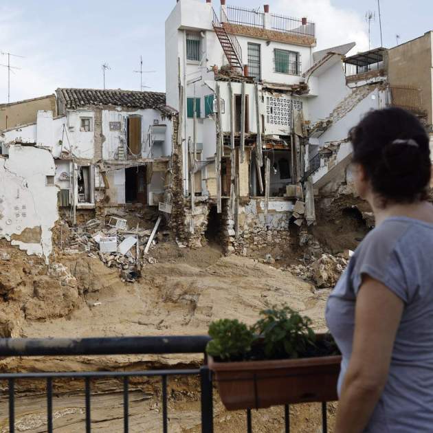 Imagen principal: una mujer mira los efectos de la DANA en Xiva / Efe