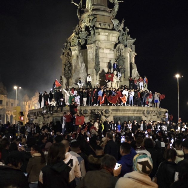 La Rambla se ha continuado llenando de simpatizantes de la selección marroquí que llegaban en columnas desde diferentes direcciones y los accesos a la plaza Catalunya han sido cortados para el tráfico. Los aficionados han seguido su celebración cantando cánticos y encendiendo bengalas rojas y verdes, los colores de la bandera de Marruecos. Algunos de ellos han subido encima de los quioscos de la Rambla o, incluso, se han puesto encima de las farolas para hacer ondear sus banderas. Otros han aprovechado para celebrar el triunfo del Marruecos mostrando sus habilidades con la pelota de fútbol. A pesar de la gran aglomeración de aficionados, de momento no se ha producido ningún incidente.