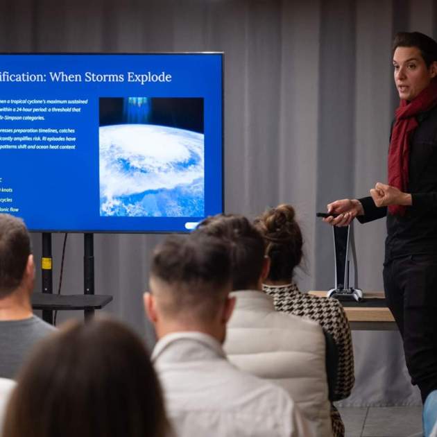 El meteorólogo estadounidense Ariel Rodríguez, de Telemundo Florida, ha aprovechado su primera visita al Principado para compartir su exposición en la que ha profundizado en la formación y organización de los huracanes, así como en los mecanismos que explican su repentina intensificación, un fenómeno cada vez más frecuente en un contexto de cambio climático. Además, la jornada ha contado con una charla telemática de Carlo Buontempo, director del Servicio de Cambio Climático de Copernicus (C3S) de la Unión Europea, que ha presentado Global Climate Highlights, aportando una visión sintética y actualizada del estado del clima a escala planetaria.