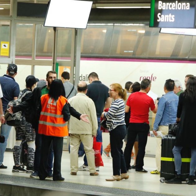 A esa hora, Luna y sus amigas tomaban el tren en Cerdanyola del Vallès para ir hacia Sants, donde debían tomar otro tren, el Euromed de las 10 h, hasta Alacant. Han procurado salir con tiempo para no perderlo pero la prudencia no ha servido para nada: han tardado una hora y media para hacer un trayecto de 30 minutos. "¿Ahora cómo llego a Alacant?", se preguntaba Luna visiblemente enfadada. Como ella, otros usuarios han acudido al servicio de atención al cliente para reclamar la devolución o el cambio de los billetes. A lo largo de la mañana, se han formado largas colas allí.